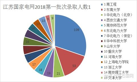 江蘇省電力公司一批次及提前批次的高校層次招聘分布中,主要集中在985院校19所,211院校3所,電力院校7所。