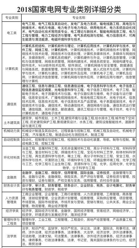 注意:如有不在此表中的專業,想考國網的建議先詢問下省公司。