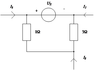 28.在下圖所示電路中,已知:US=10V,I1=-4A,I2=1A。電流I3為()。