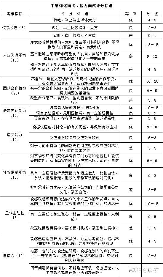 國網半結構化面試、壓力面試評分標準