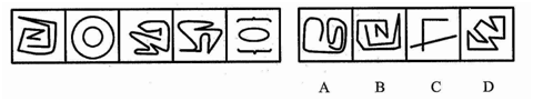 解析:本題考點為封閉性。本題圖形分別滿足不封閉、封閉、不封閉、封閉和不封閉,因此需要選擇一個封閉圖形,答案即為D。請注意,本題不能用曲直性判斷,因為圖形包括半曲半直和曲兩種情況,且沒有規律。
