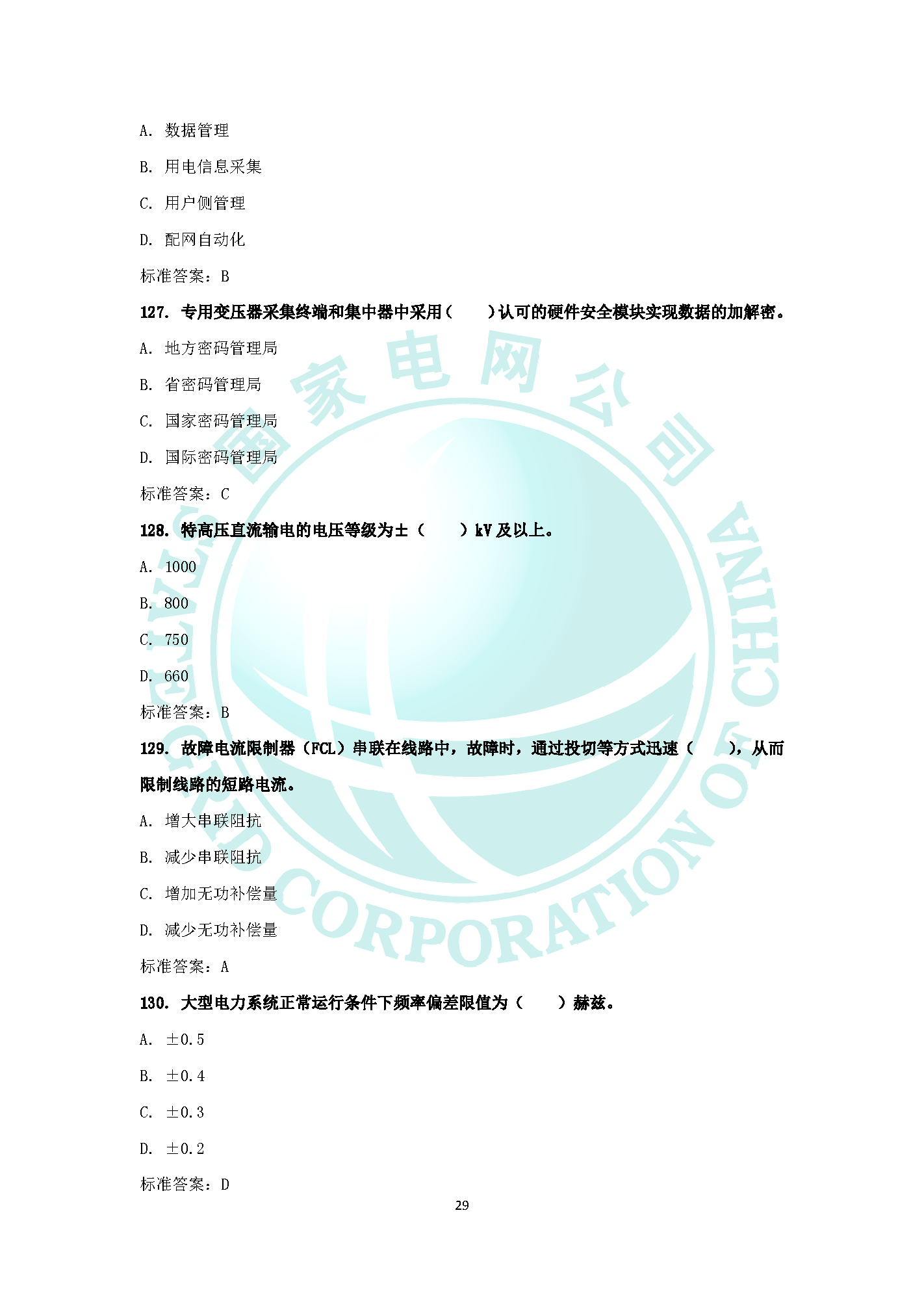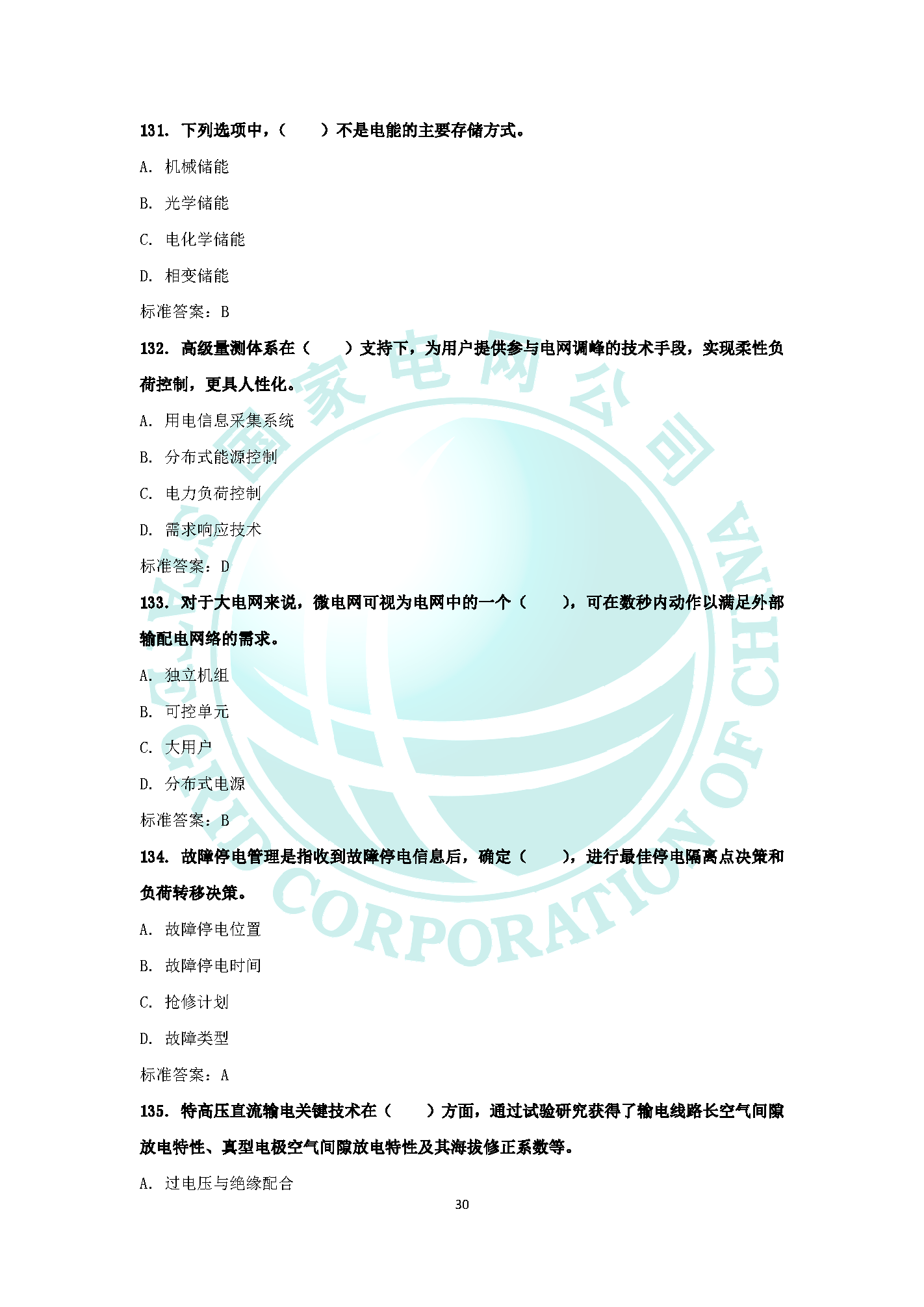 2019國家電網企業文化電力與能源戰略題庫(六)