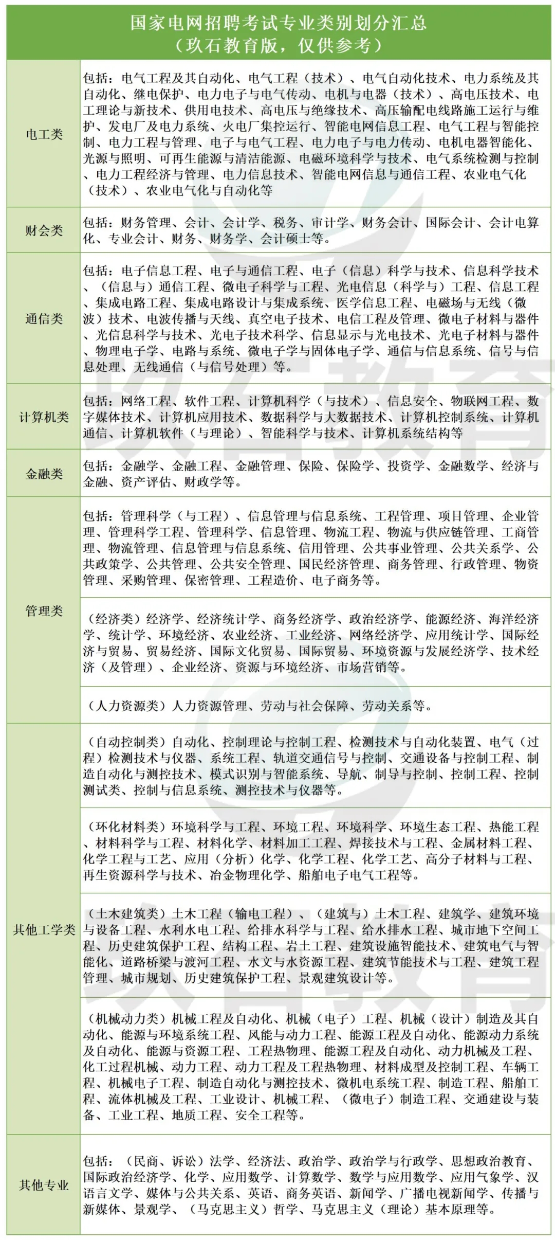 國網招聘雖有八大類專業,但是少數專業類別劃分并不是太明確,在此還是需要和國網人資進一步確認,畢竟各專業考綱不同,以免影響備考。