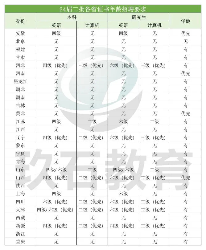 一批二批招聘要求或有所不同