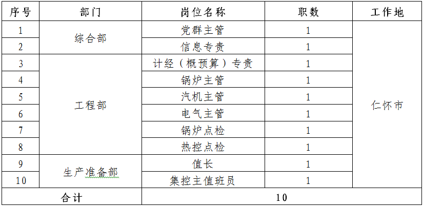 根據(jù)工作需要,面向集團(tuán)公司系統(tǒng)內(nèi)公開招聘所屬仁懷環(huán)保、純陽(yáng)山風(fēng)電、鳳臺(tái)生物質(zhì)三家單位工作人員。現(xiàn)將有關(guān)事項(xiàng)公告如下: