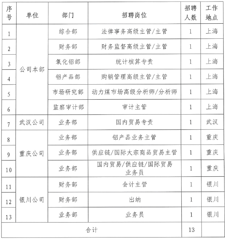 2018年國家電投集團鋁業國際貿易有限公司招聘公告