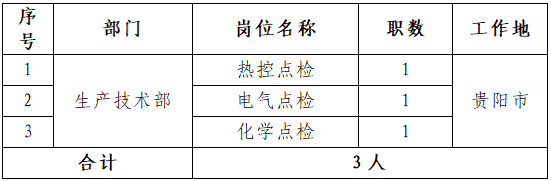 根據(jù)工作需要,面向國家電投系統(tǒng)內(nèi)公開招聘熱控點(diǎn)檢等3人,具體如下: