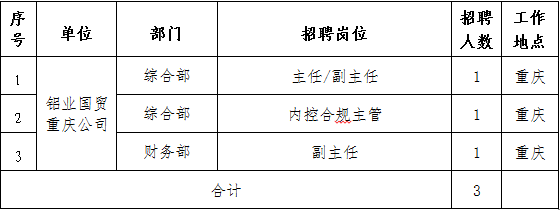 當前位置: 電網人力資源招聘平臺 > 招聘公告 > 2019年國家電投集團鋁業國際貿易有限公司招聘公告