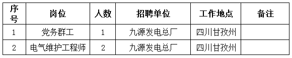 因工作需要,現面向集團系統內、外公開招聘五凌電力四川九源發電總廠黨務群工等崗位人員,具體事項公告如下: