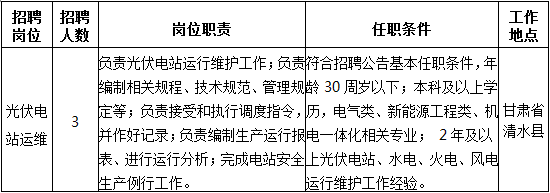 2019年國家電投甘肅分公司清水綠動新能源有限公司招聘公告