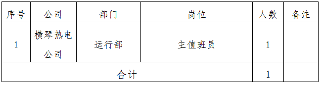 2019年國家電投集團珠海橫琴熱電有限公司招聘公告