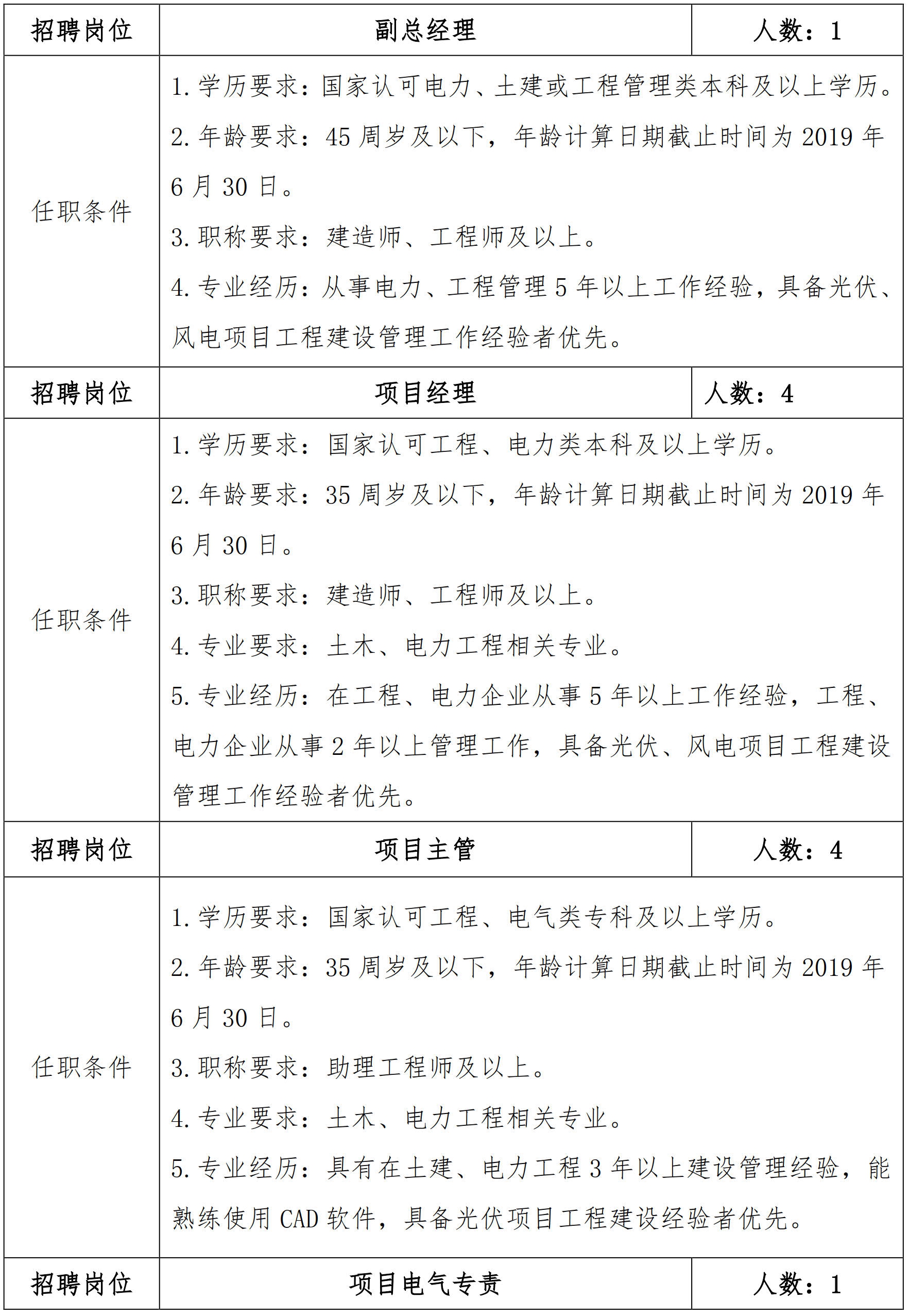 當前位置: 國家電網人力資源招聘平臺 > 招聘公告 > 2019年國家電投集團貴州金元南方新能源有限公司招聘公告