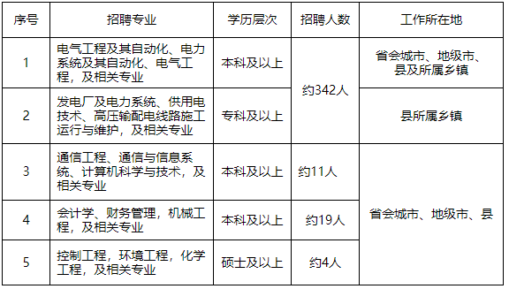 本批次招聘職位涉及公司所屬16個市供電公司(含所屬縣級供電公司)和相關直屬單位,主要安排在市、縣供電公司生產一線崗位和直屬單位專業技術、技能崗位等。需求專業信息匯總如下(均指主修專業,不包含第二學位):