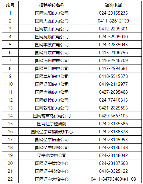 根據(jù)公司發(fā)展需要,現(xiàn)招聘2020年應(yīng)屆高校畢業(yè)生,歡迎有志投身于遼寧電網(wǎng)事業(yè)的優(yōu)秀學(xué)子踴躍報(bào)名。