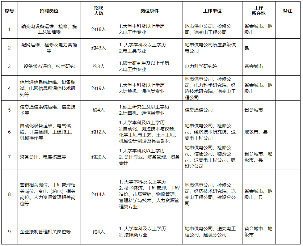 3.本批次(第二批)招聘專業:電工類、電子信息類(計算機、通信)、其他工學類、財務會計類、管理類、其他類專業本科及以上學歷應屆畢業生。錄用畢業生招聘崗位為生產一線技能崗位,并在分配的單位和生產崗位工作滿足一定年限后,方可參加技術、管理崗位競聘或申請跨單位調動。