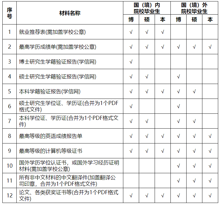 6.優先招聘英語、計算機具備一定水平畢業生。其中,本科生英語具備國家四級或六級水平(成績為425分及以上),或對于其它語種達到相應水平;研究生英語具備國家六級水平(成績為425分及以上),或對于其它語種達到相應水平;計算機具備國家二級及以上水平(計算機專業畢業生除外)。