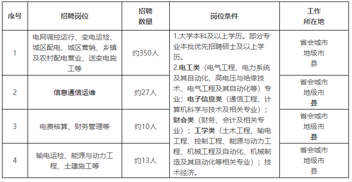 2.遵守國家法律法規,無違法違紀等不良記錄;品行端正,誠實守信;認同國家電網有限公司企業文化;服從用人單位的崗位安排。