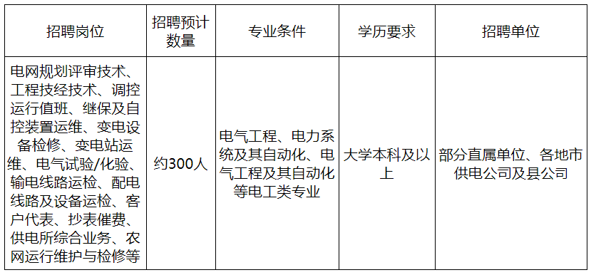 1.招聘范圍:2021年全國普通高等院校國家計劃內統招的全日制應屆電工類畢業生。
