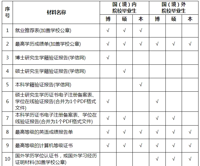 6.優先招聘英語、計算機具備一定水平畢業生。其中,本科生英語具備國家四級或六級水平(成績為425分及以上),或對于其它語種達到相應水平;研究生英語具備國家六級水平(成績為425分及以上),或對于其它語種達到相應水平;計算機具備國家二級及以上水平(計算機專業畢業生除外)。