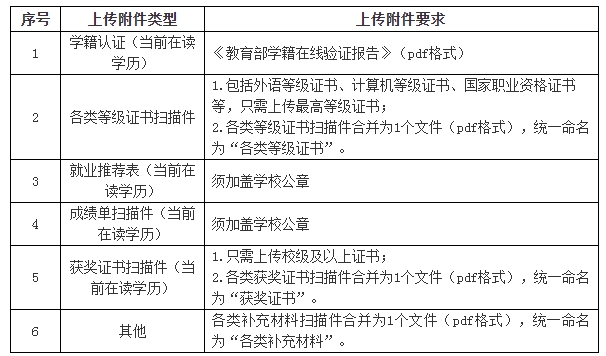 3.上傳應聘附件材料。應聘畢業生通過招聘平臺及時、規范上傳個人應聘附件材料,上傳附件數量不超過7個。應聘畢業生應確保應聘材料能正常打開、清晰顯示,因應聘材料不能正常打開、圖像不清晰或未按規范要求填報導致的結果由應聘者本人承擔。上傳附件具體要求如下:
