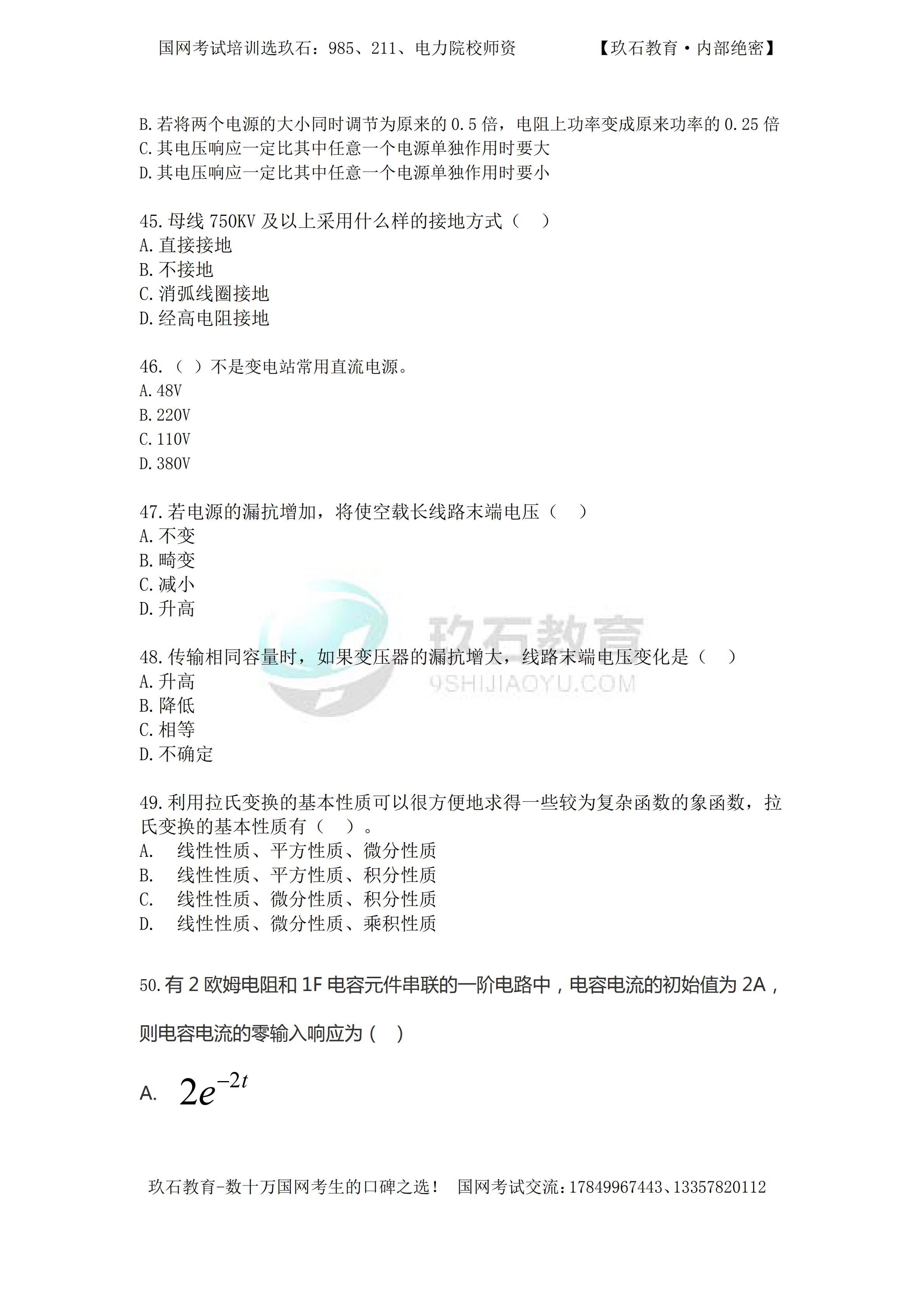 2016年國家電網(wǎng)招聘真題電工類本科(二)——(38-69)