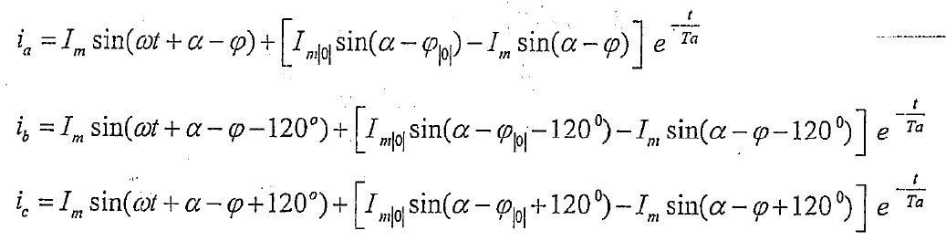 無限大電源三相短路全電流為: