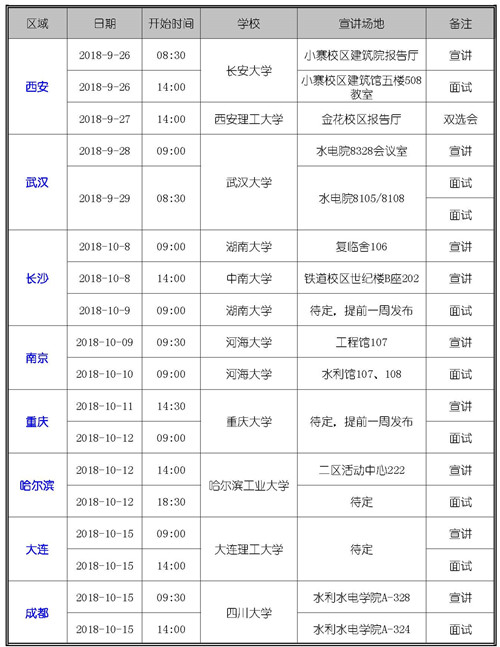 2019年中國電力建設集團中南院校園招聘行程安排及相關說明
