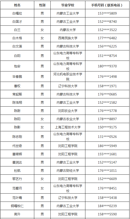 2019年內蒙古東部電力有限公司第2批高校畢業生錄用人員公示
