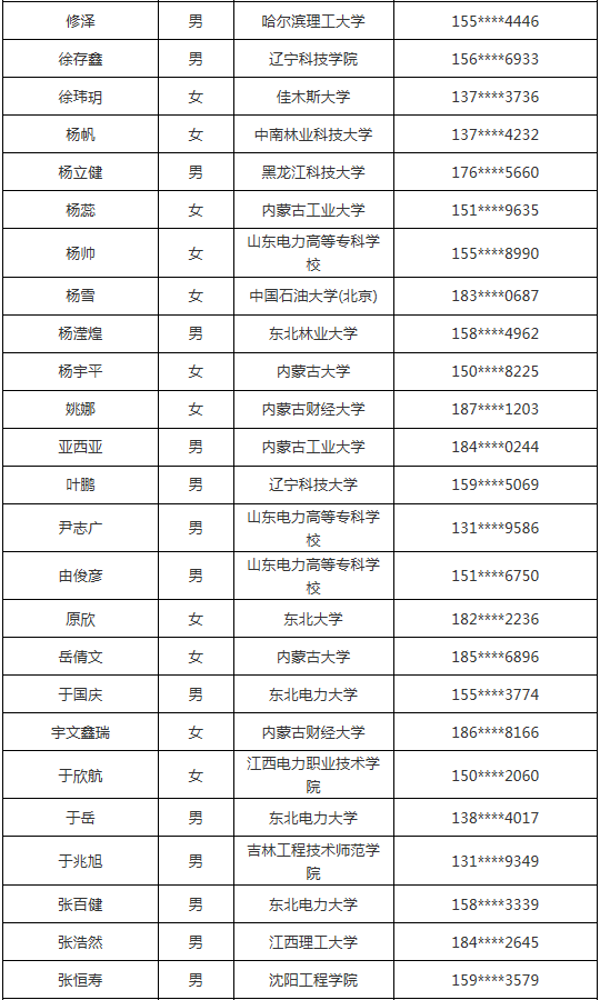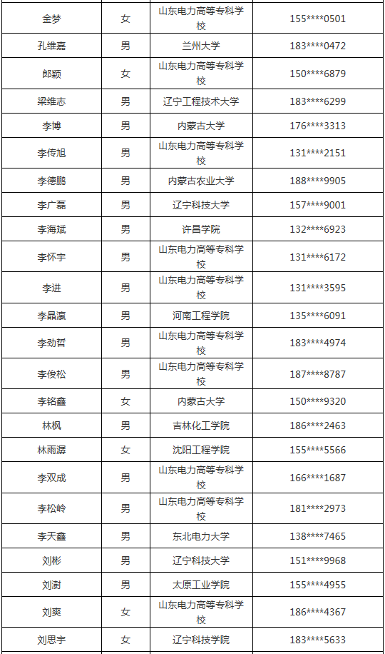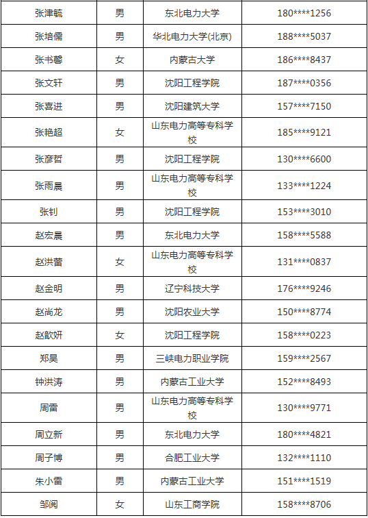 注:手機號碼(聯系電話)是應聘人在國家電網公司人力資源招聘平臺中登記的聯系電話。