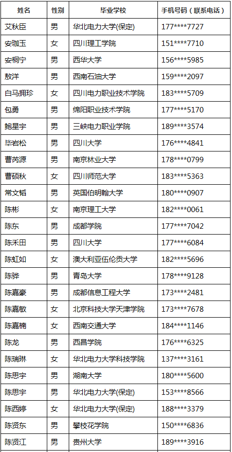 2019年國網四川省電力有限公司第2批高校畢業生錄用人員公示