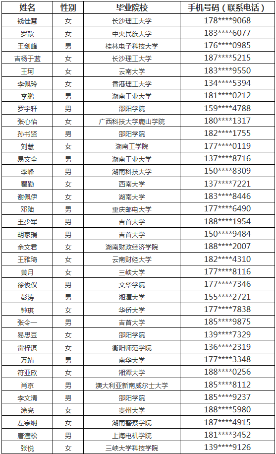 2019年國網湖南省電力有限公司第2批高校畢業生錄用人員公示