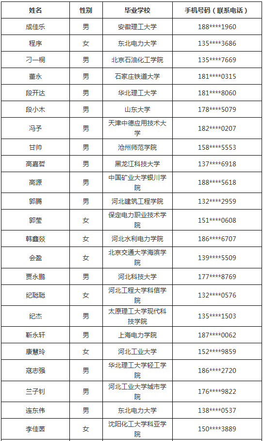 注:手機號碼(聯系電話)是應聘人在國家電網公司人力資源招聘平臺中登記的聯系電話。