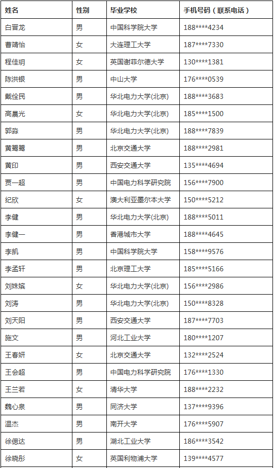 注:手機號碼(聯系電話)是應聘人在國家電網公司人力資源招聘平臺中登記的聯系電話。
