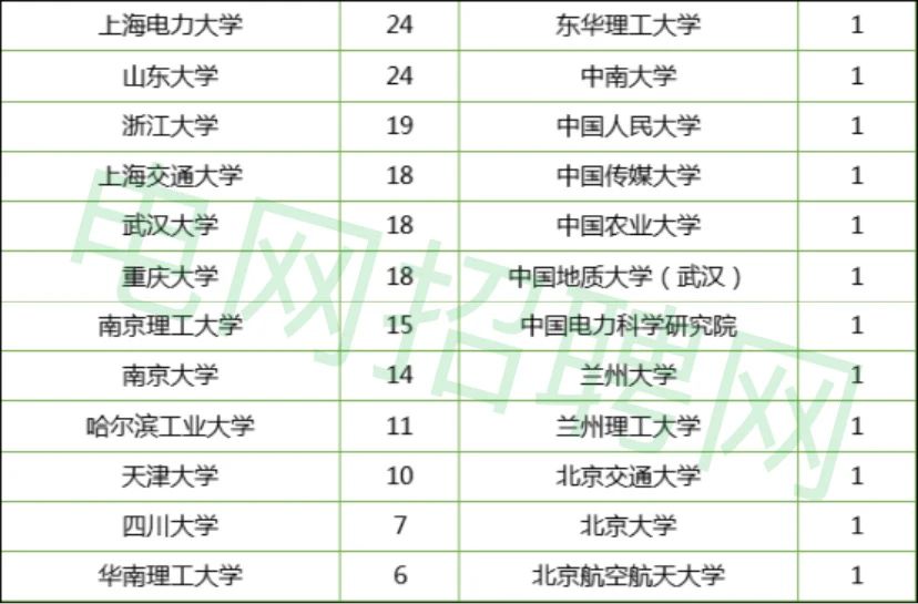 102所高校中,江蘇高校共有20所,共招聘578人,占比高達(dá)59%,其它地區(qū)高校一共82所,占比共41%。很明顯,江蘇本地高校更占優(yōu)勢,其中很大一部分原因是,江蘇高校的江蘇本地生源較多,江蘇電網(wǎng)招聘也比較看重畢業(yè)生是哪里人。