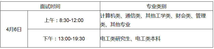 面試時間為2016年4月6日。各專業具體面試時間安排如下: