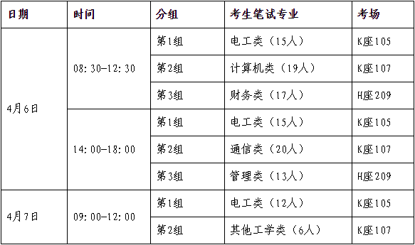 3. 面試開始前半小時在等候室(K 座301會議室)組織考生抽簽,確定面試順序(4月6日上午 8:00 集合,下午13:30 集合;4月7日上午8:30集合),請考生務(wù)必按時參加抽簽,逾期不參加的取消面試資格。