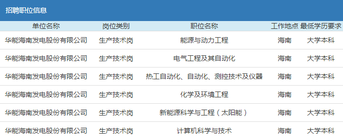 2019年華能集團(tuán)海南發(fā)電股份有限公司應(yīng)屆畢業(yè)生招聘公告