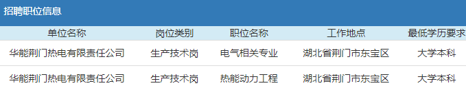 2019年華能集團荊門熱電有限責任公司應屆高校畢業生招聘公告