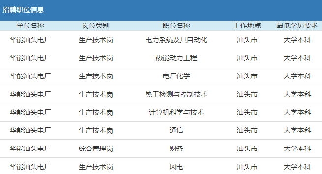 當前位置: 電網(wǎng)人力資源招聘平臺 > 招聘信息 > 2019年華能集團汕頭電廠校園招聘公告