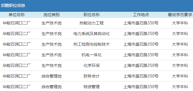 2019年華能集團上海石洞口第二電廠招聘公告