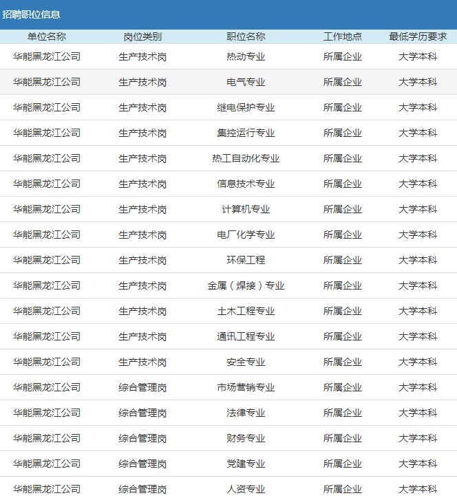2019年華能集團黑龍江發(fā)電有限公司應屆高校畢業(yè)生招聘公告