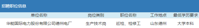 2019年華能國際電力股份有限公司德州電廠應屆畢業生招聘啟事