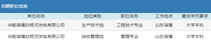 通訊地址:山東省淄博市博山區泉水路1號華能白楊河電廠人力資源部